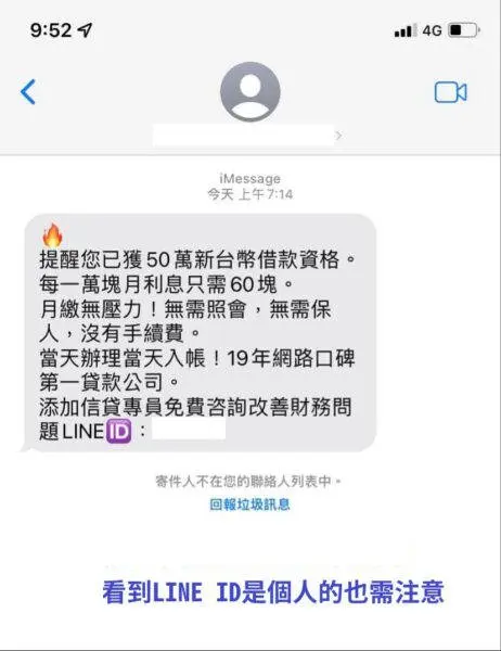 我們專員只會以電話或LINE與客戶做聯繫,也不會將個人LINE ID放進廣告裡